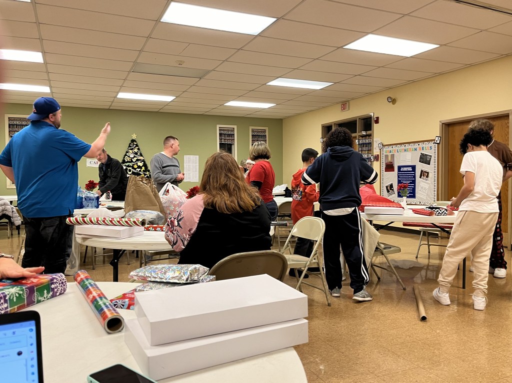 December ’23: Youth wrapping gifts they had purchased for families who would be without.